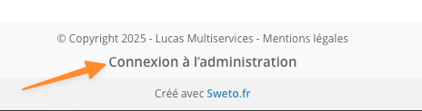 Cliquez sur le lien « Connexion à l’administration » tout en bas de votre site internet.