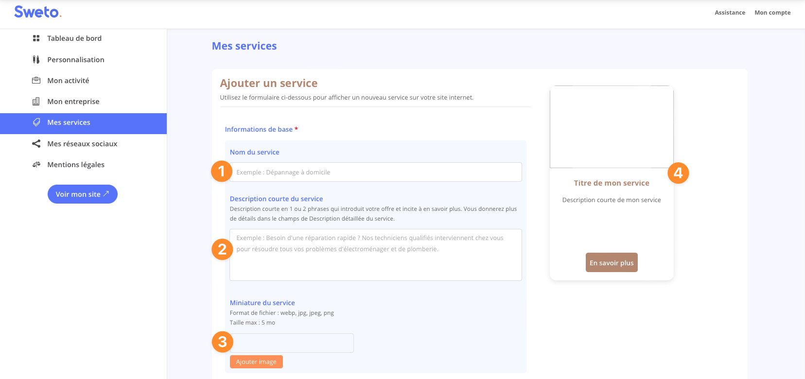3. Miniature du service : Ajoutez une image attrayante qui illustre votre service.