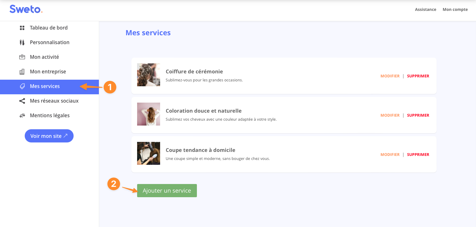 Dans le menu principal, cliquez sur “Mes services” puis sur le bouton “Ajouter un service”.