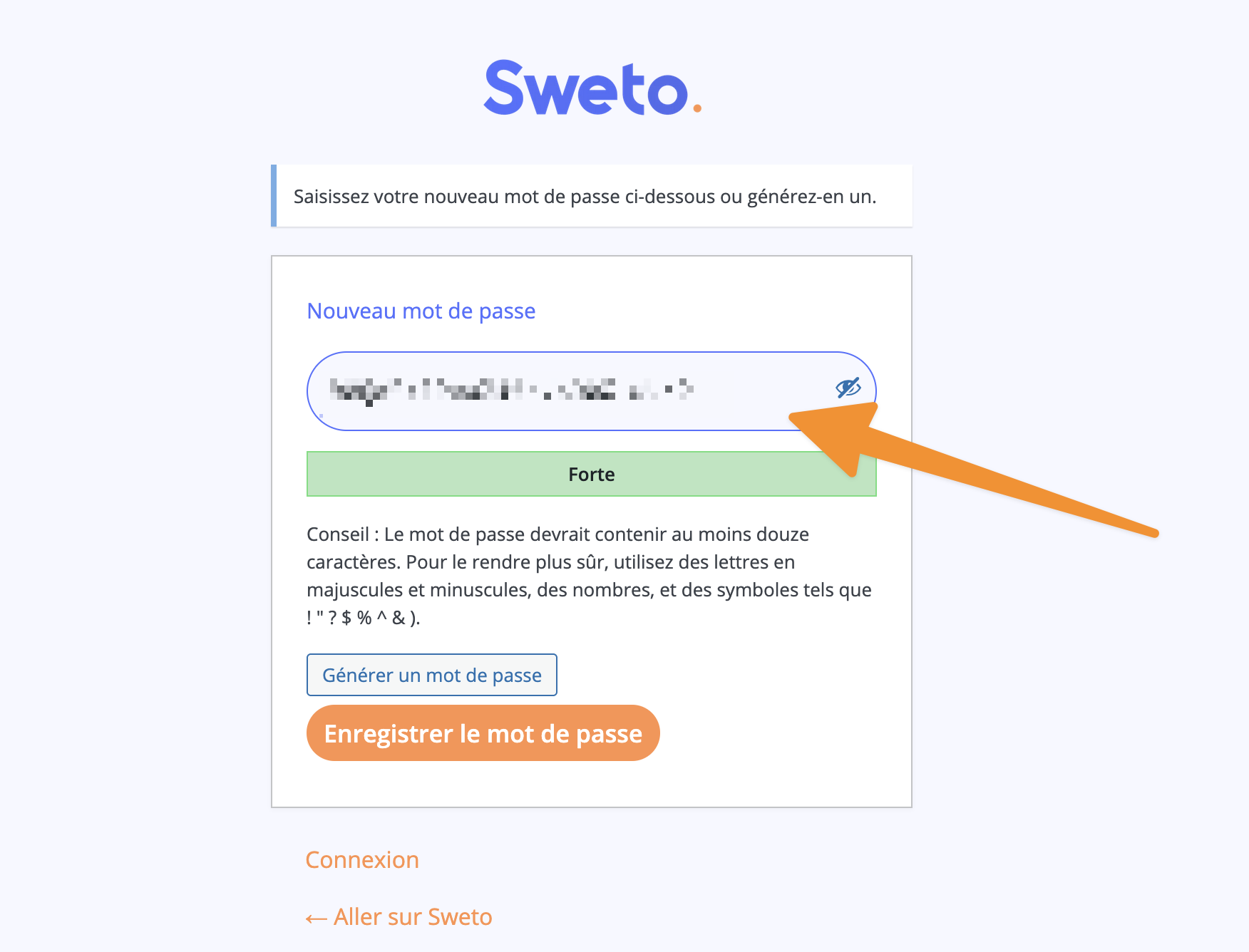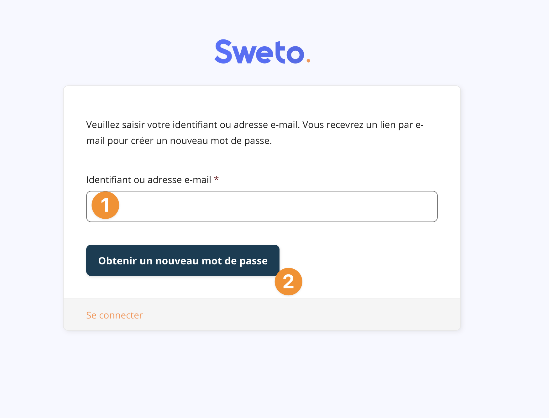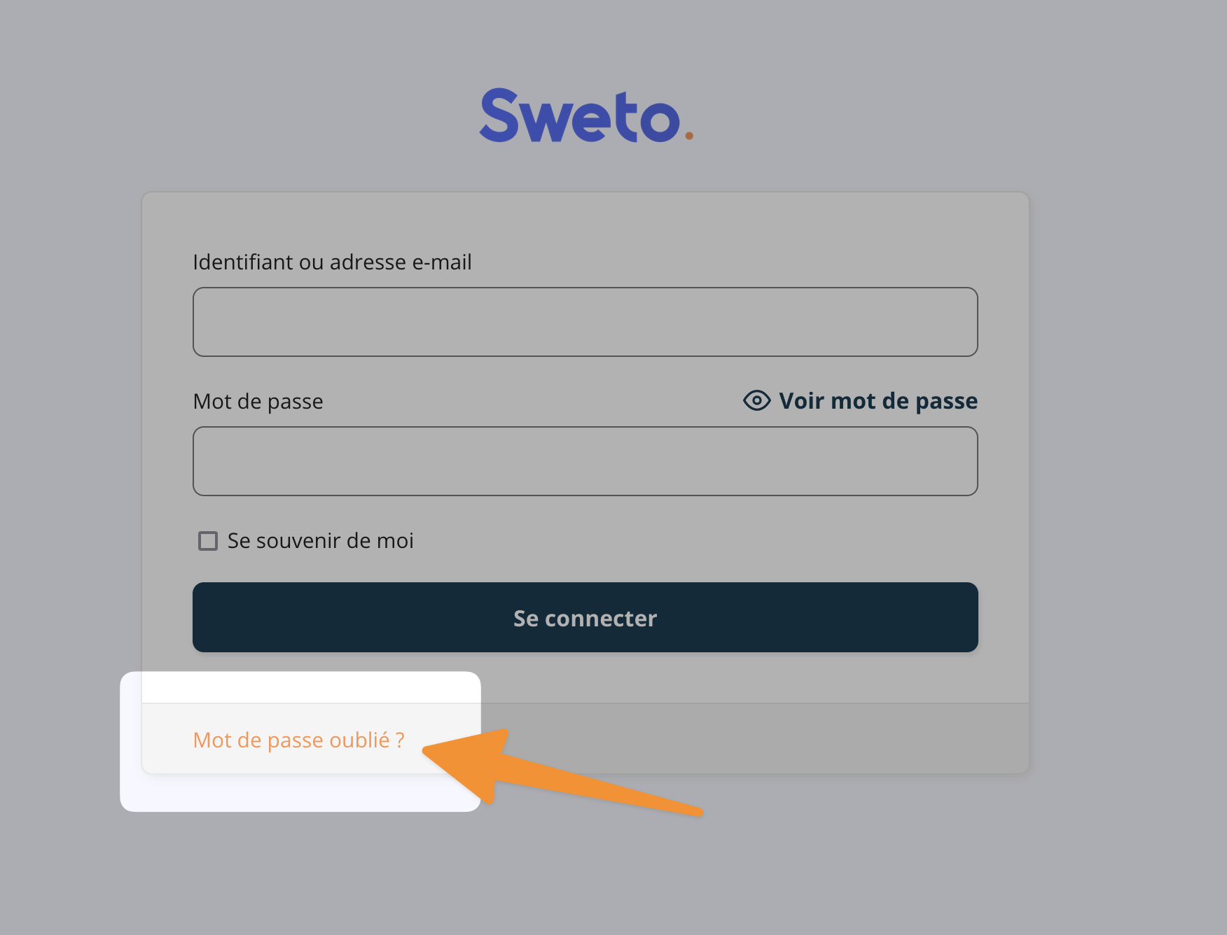 Sur la page de connexion à votre espace Sweto ou sur ce lien : Mot de passe oublié
