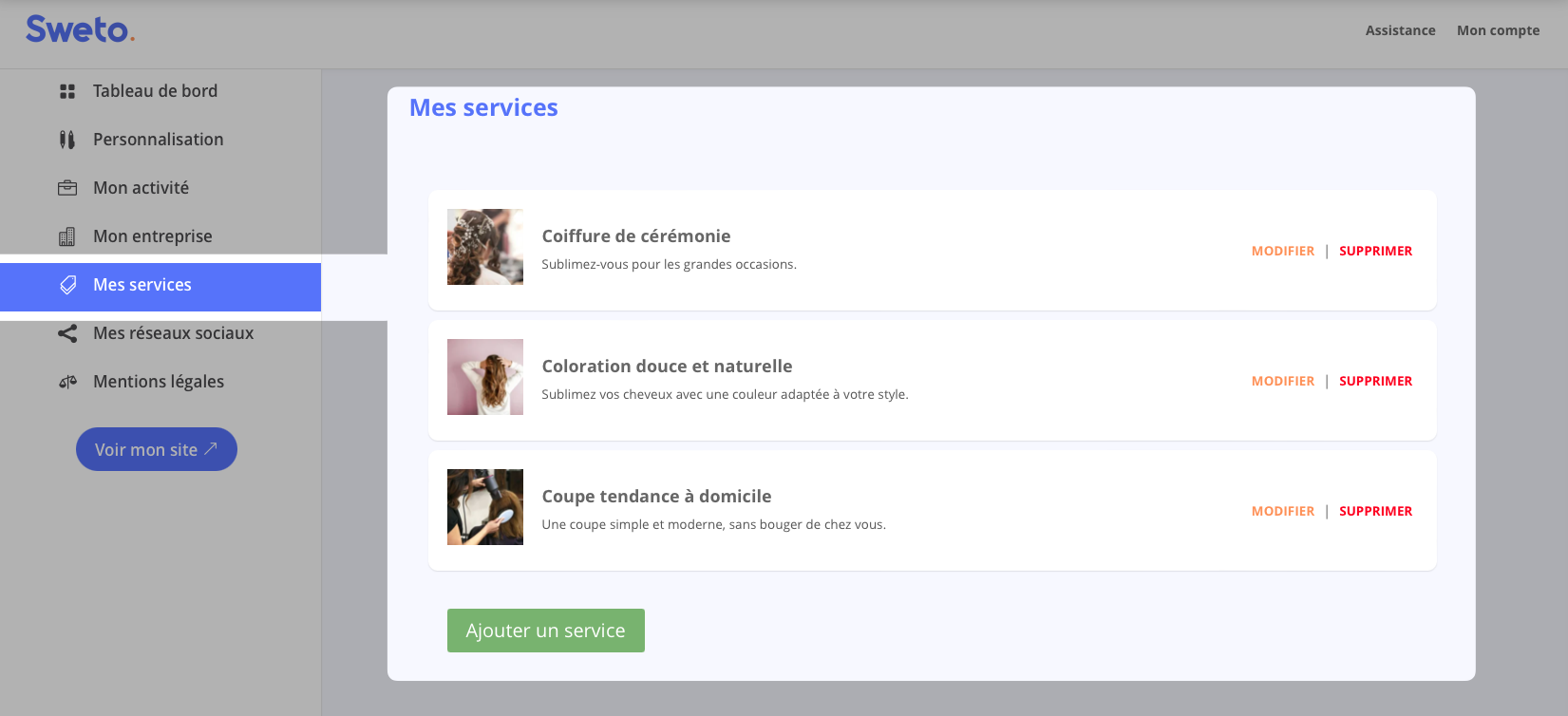Le menu “Mes Services” vous permet de présenter et de gérer facilement les services proposés par votre entreprise.