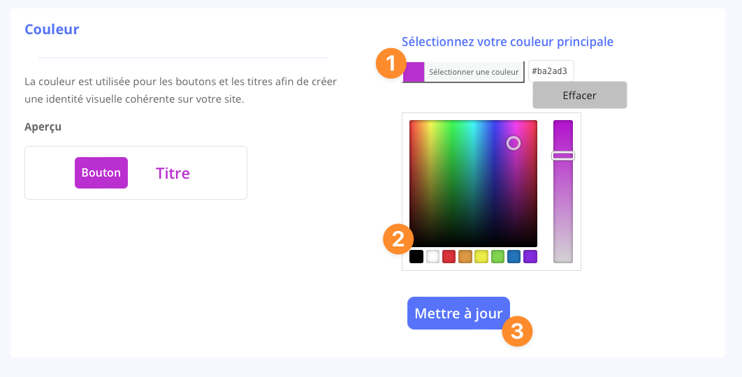 2. Sélectionnez votre couleur à l’aide du sélecteur ou renseignez votre code couleur si vous le connaissez