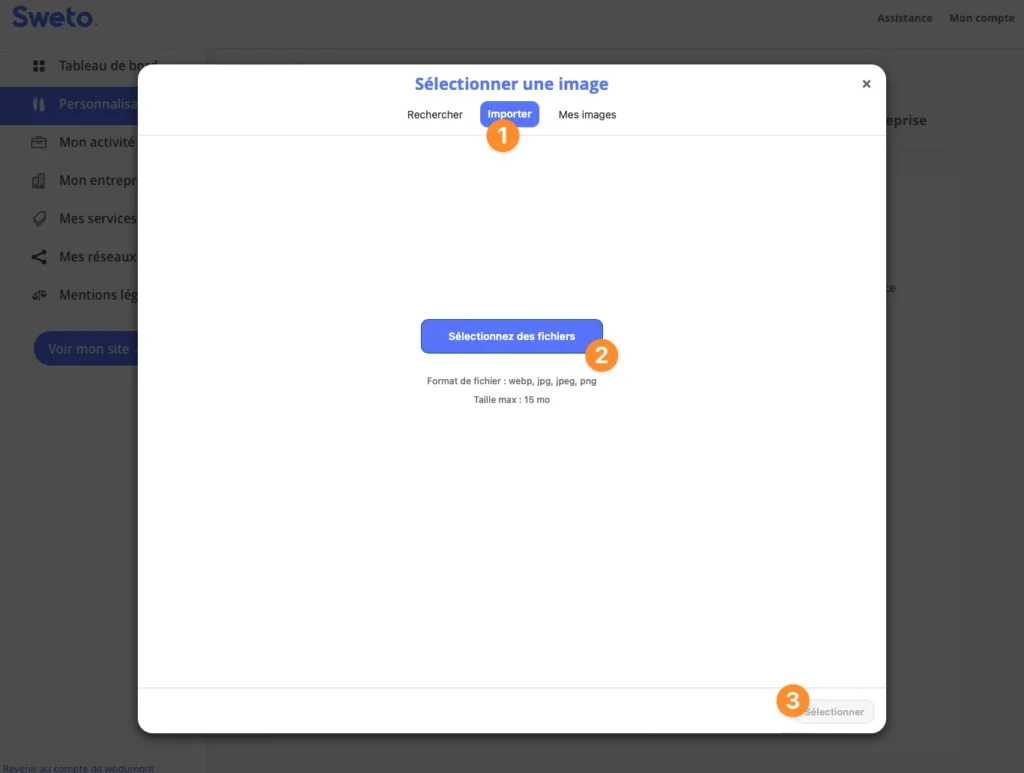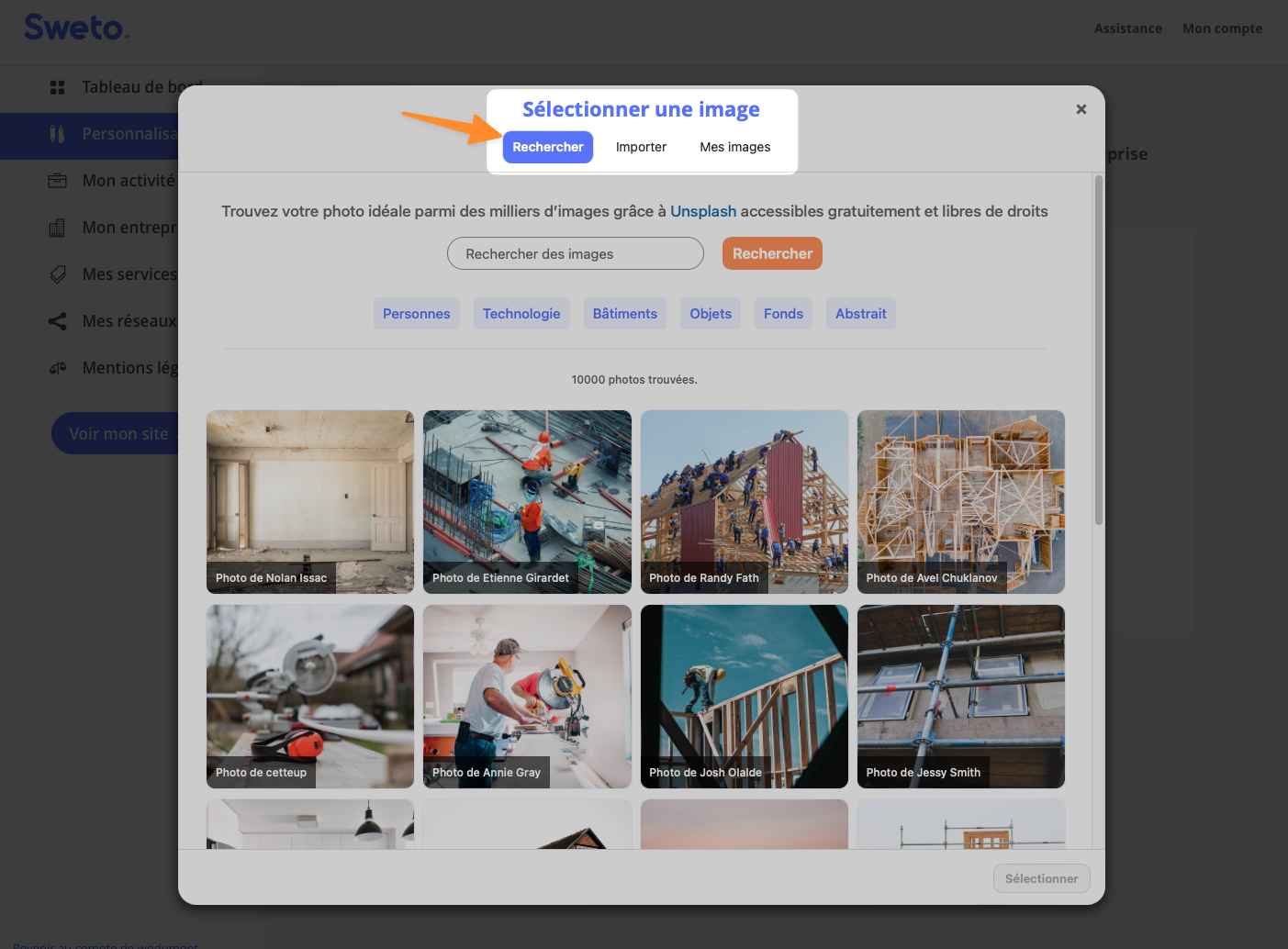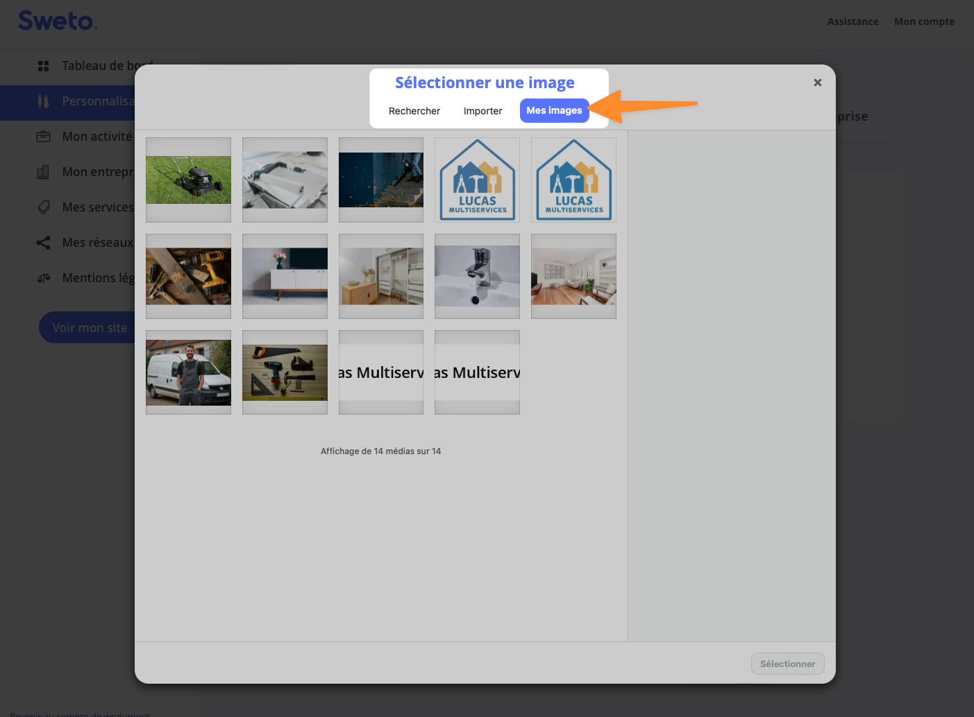 - Par défaut, Sweto propose des images en rapport avec votre secteur d’activité