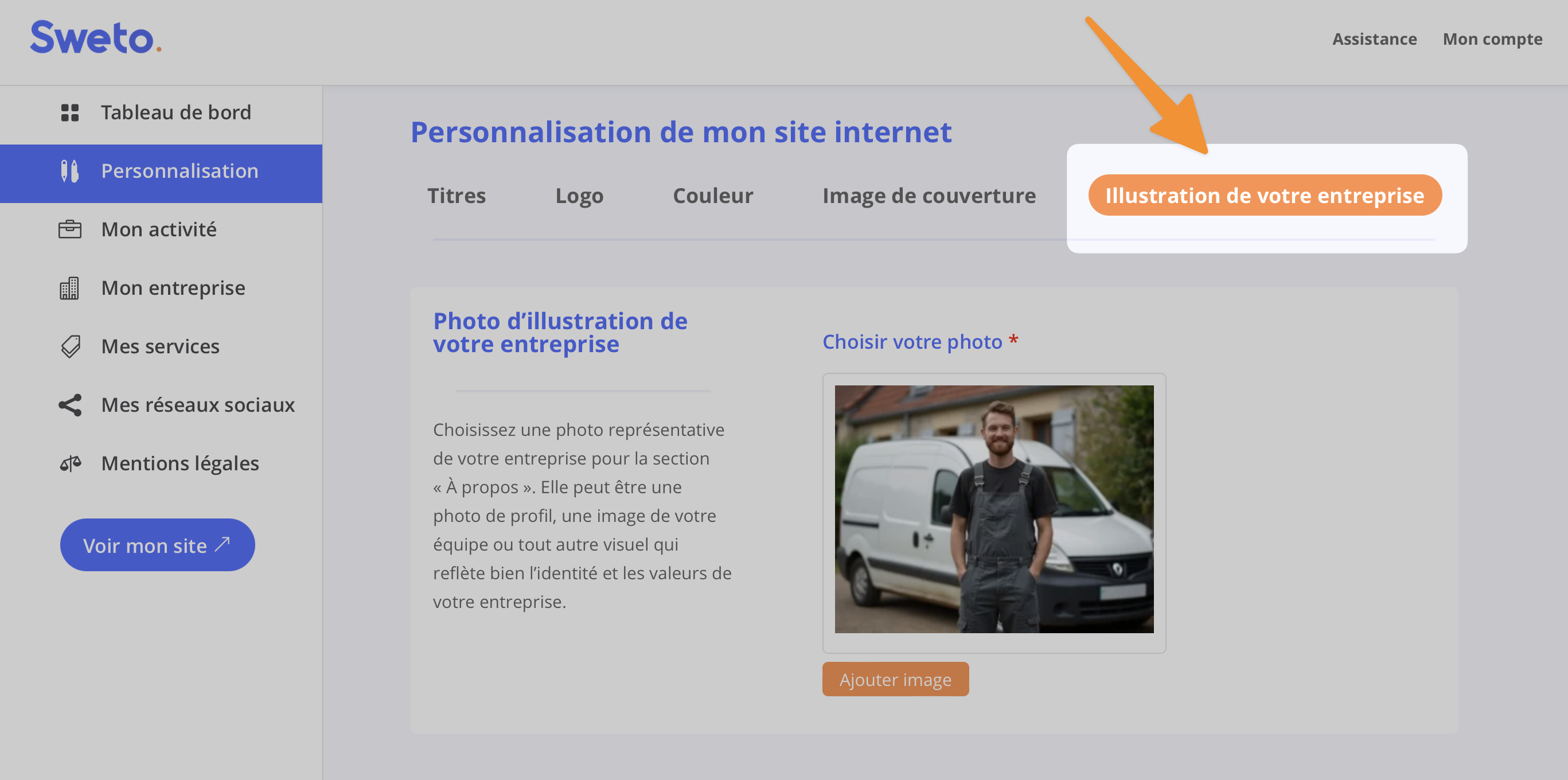 Cliquez sur le menu « Illustration de votre entreprise«