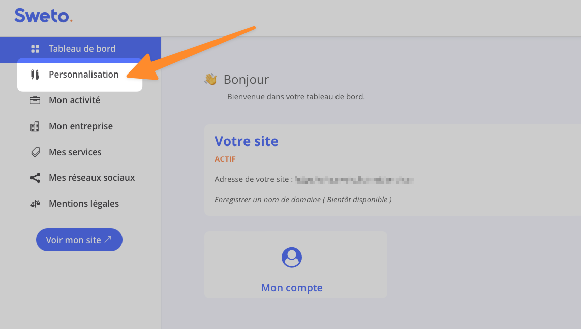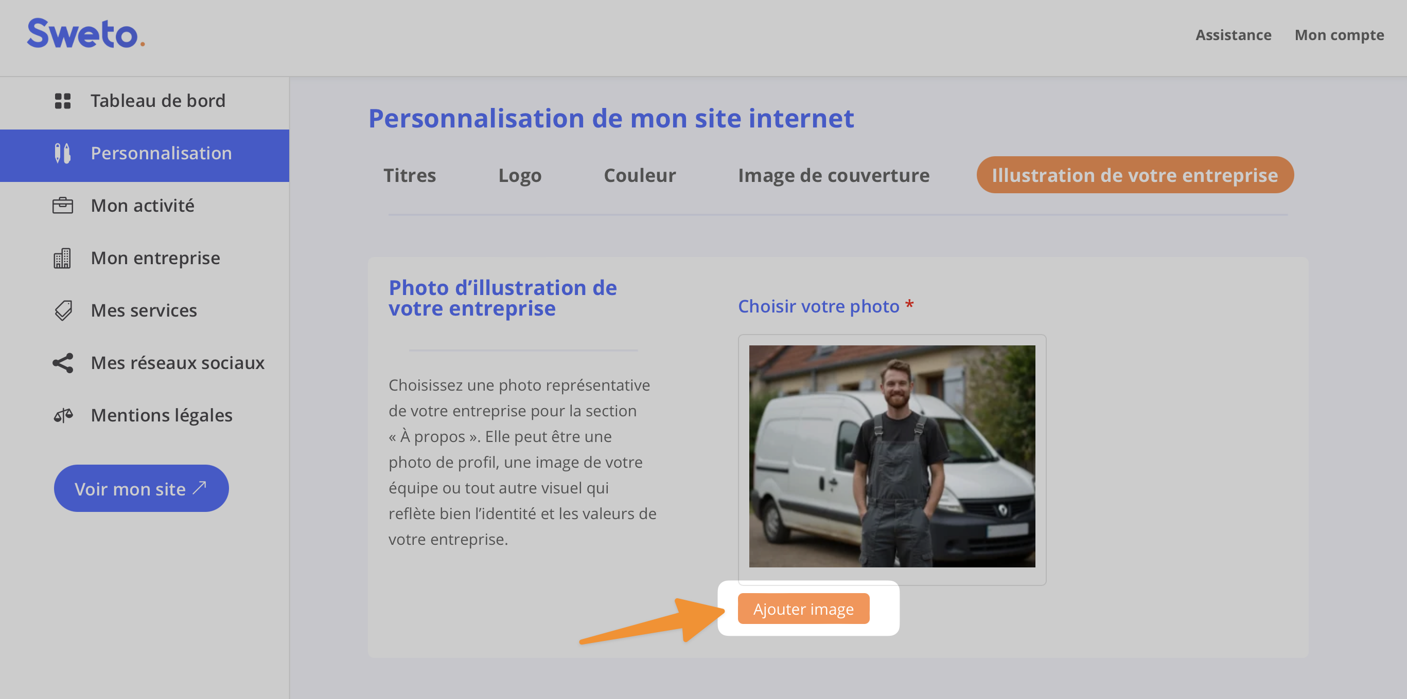 Pour modifier la photo « à propos » de votre site internet Sweto, rendez-vous dans l’espace d’administration
