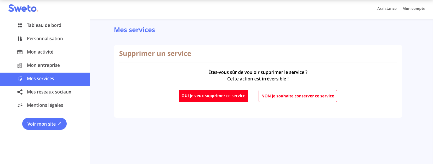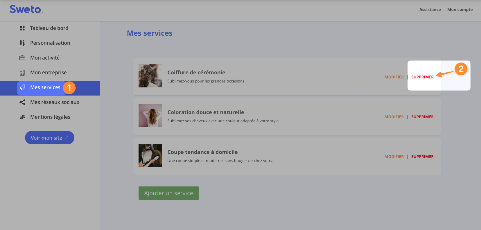 Pour supprimer un service de votre site Sweto, voici les étapes à suivre :